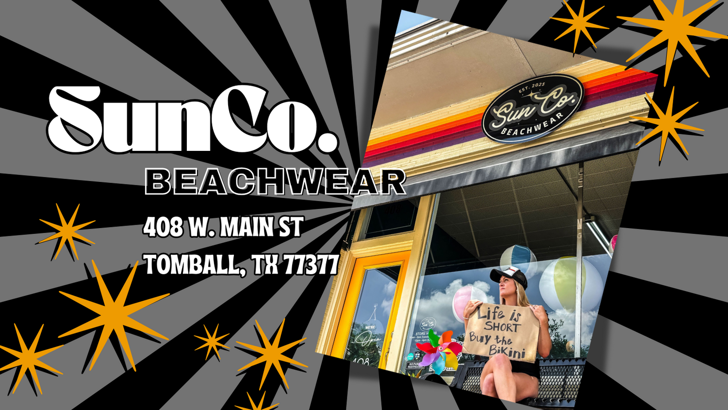 Based in Tomball, SunCo. Beachwear wants to provide a fun, enjoyable, and nostalgic atmosphere. Providing swimwear and accessories, we aim to make you feel stylish and comfortable in everything you wear.